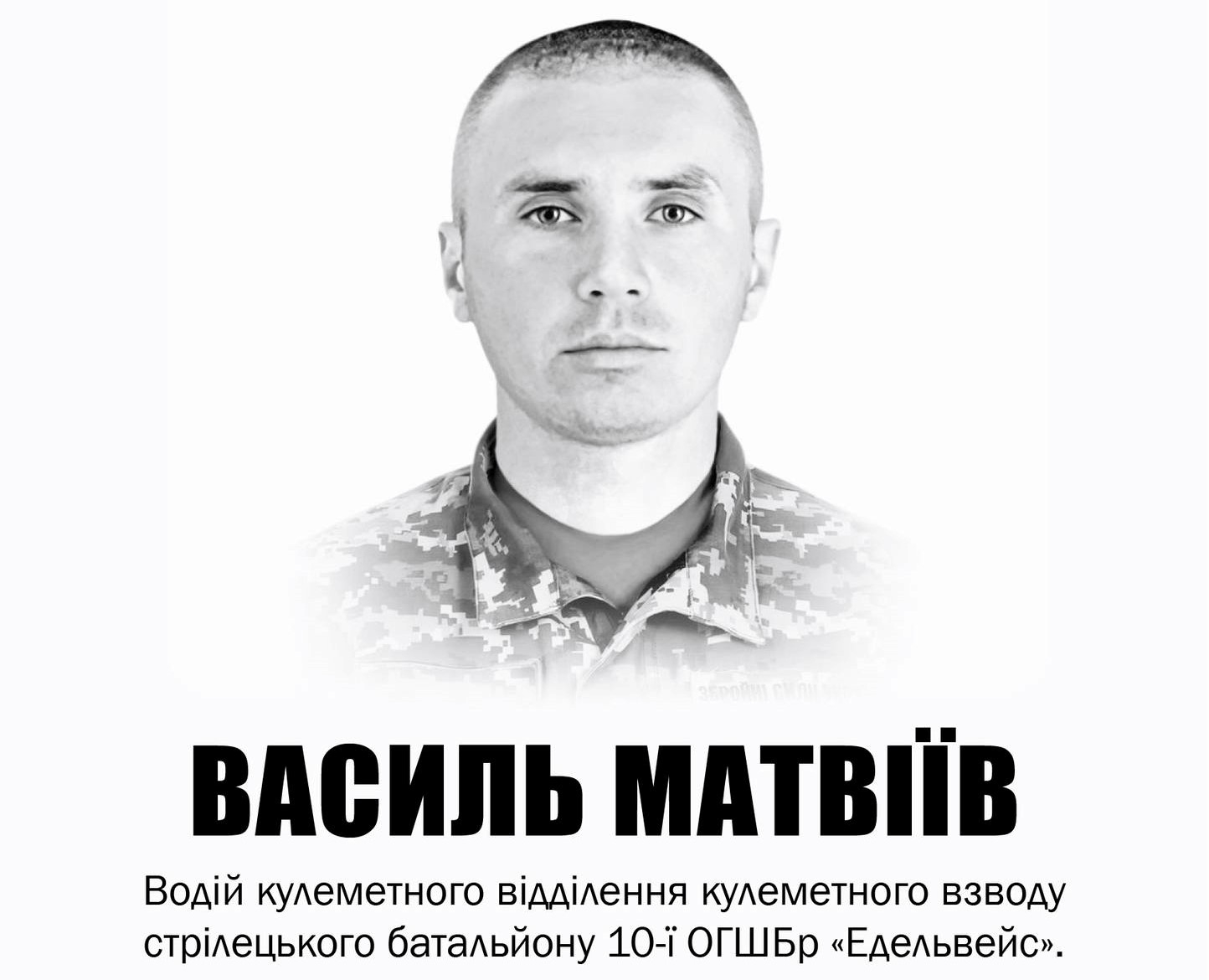 Захисник поліг поблизу села Миколаївка Бахмутського району, що на Донеччині. Василю Матвіїву було 38 років.