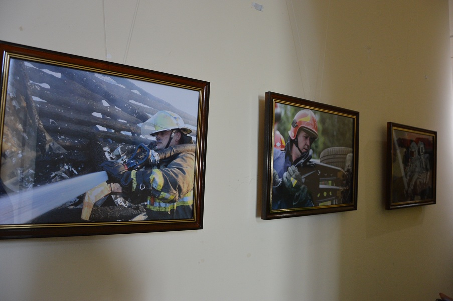 На виставці представлено 50 світлин з оперативної роботи рятувальників області, а також фото працівників служби порятунку зі своїми дітьми.