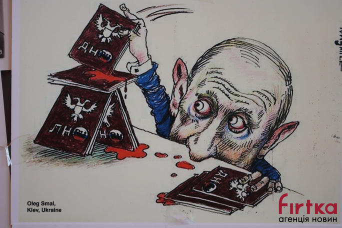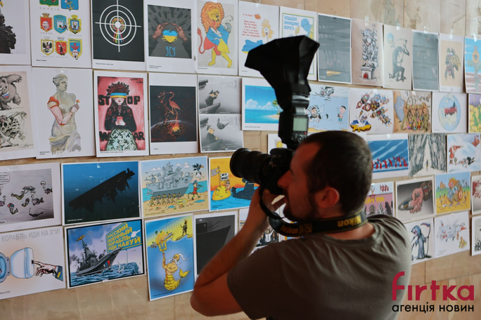 В Івано-Франківському драмтеатрі, у п'ятницю 17 червня відкрилась Міжнародна виставка карикатур на тему «Російський військовий корабель, йди на ***!», на якій представлено 270 творчих робіт.