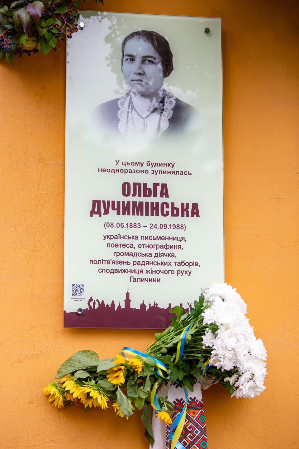В пам‘яті Ольги Дучимінської - української письменниці, поетеси, етнографині, громадської діячки, політвʼязня радянських таборів, сподвижниці жіночого руху Галичини, відкрили анотаційну дошку в Івано-Франківську.