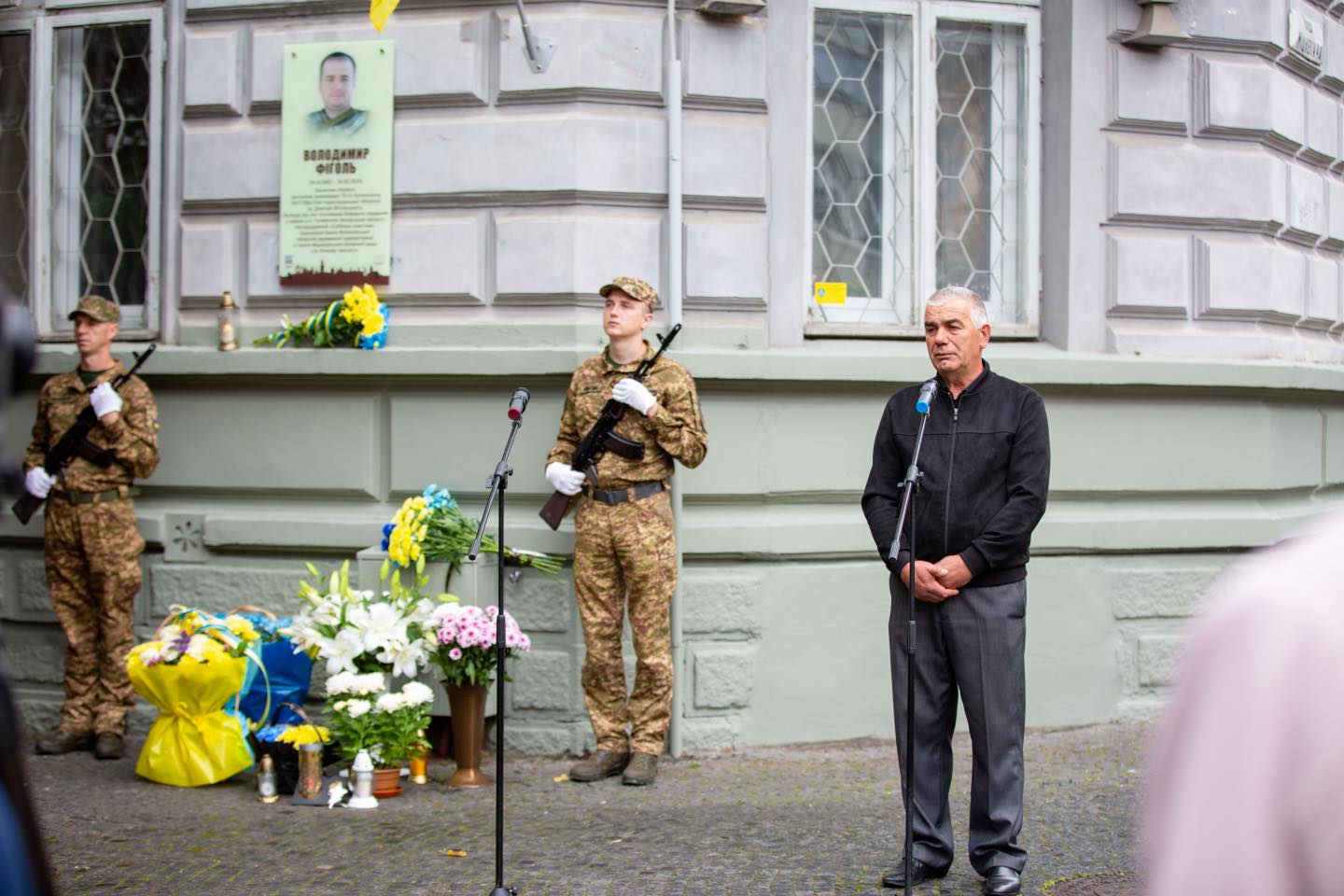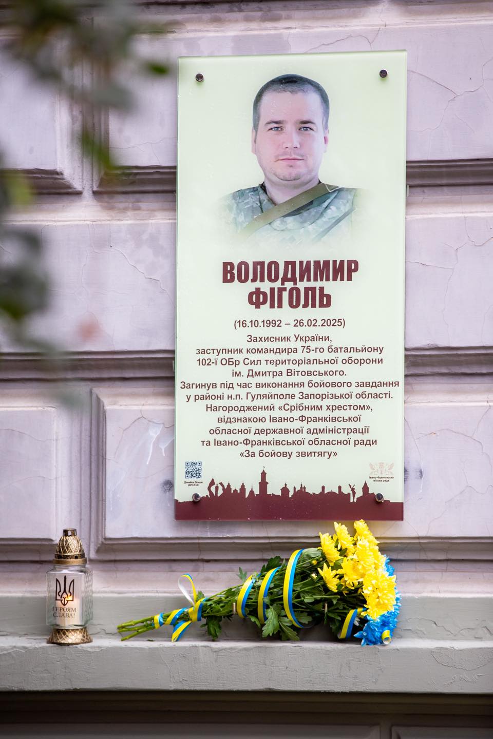 Відкрили анотаційну дошку Володимиру Фіголю — захиснику України, заступнику командира 75-го батальйону 102-ї бригади Сил територіальної оборони ім. Дмитра Вітовського.