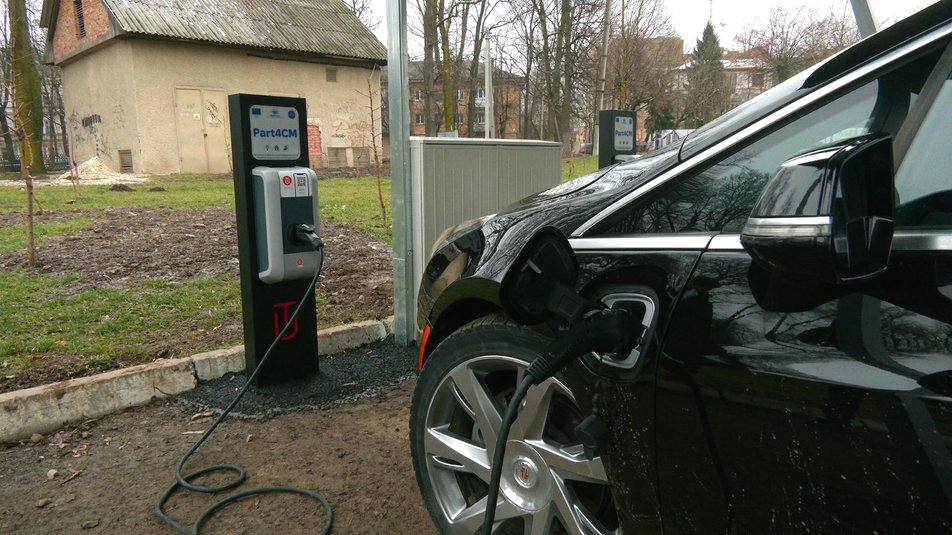 В Івано-Франківську біля стадіону "Рух" відкрили нову станцію для зарядки електроавтомобілів.