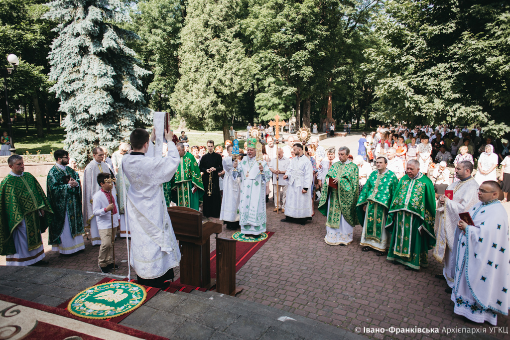 На свято Зіслання Святого Духа, 16 червня, в Меморіальному сквері відбулася Архієрейська божественна Літургія, яку очолив Владика Володимир Війтишин у співслужінні чисельного духовенства Івано-Франківської Митрополії, інформує Фіртка з посиланням на прес-службу Архієпархії.