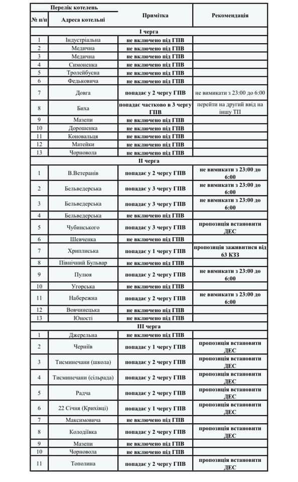 Там, де заживити котельні до ліній з критичною інфраструктурою технічної змоги немає, котельні будуть переведені на подовжений графік роботи вночі, щоб потужності котельні могли забезпечити обігрів кожної оселі, як до прикладу на вул. Пулюя, Набережній та Військових Ветеранів в м. Івано-Франківськ;