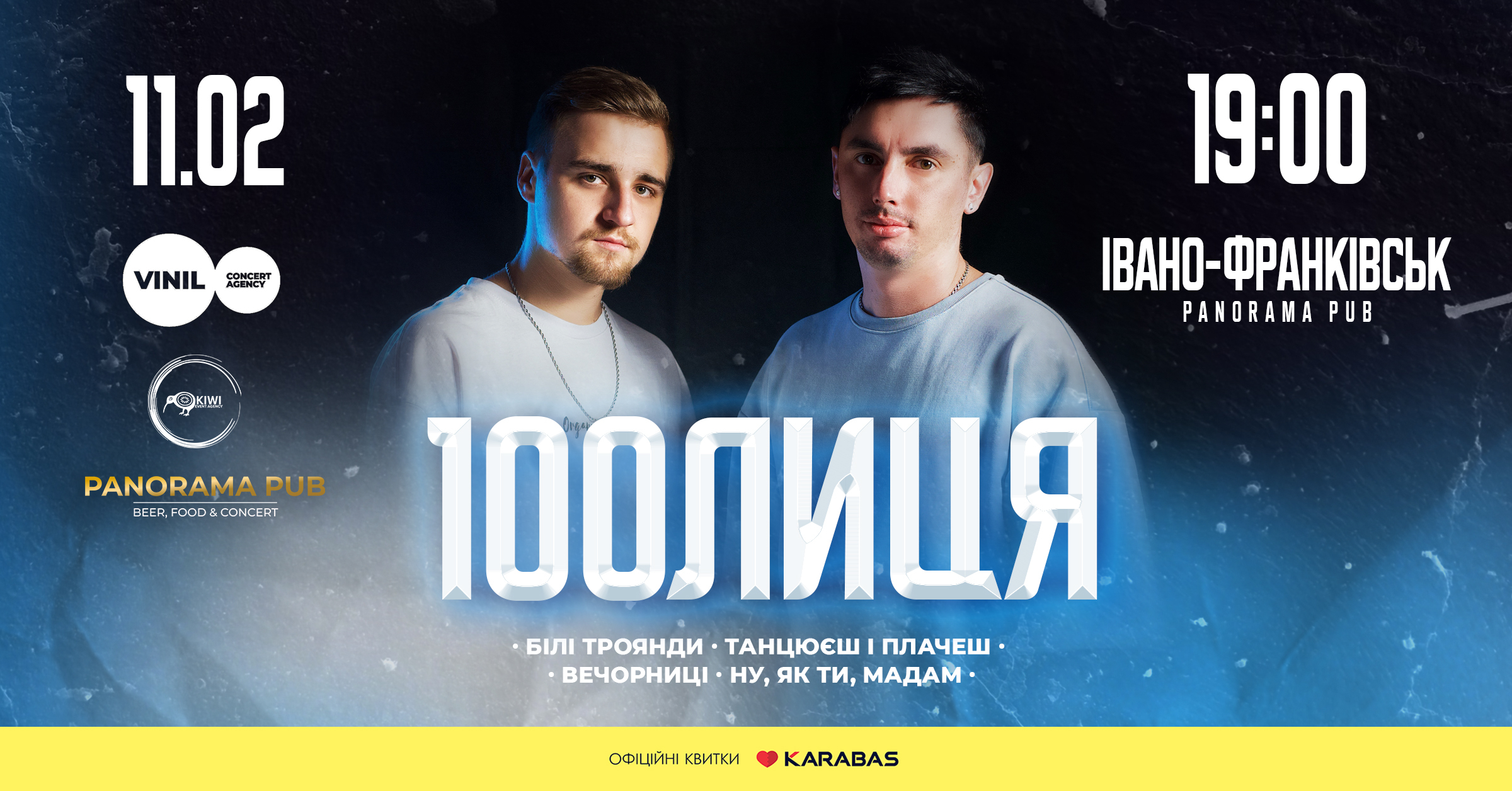 Чудовий подарунок до Дня всіх Закоханих — 11 лютого у Panorama PUB відбудеться перший великий сольний концерт гурту 100лиця в Івано-Франківську.