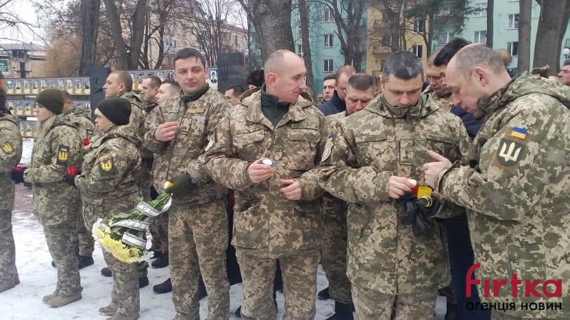 Вранці, часники АТО міста та області, сім'ї загиблих, волонтери, небайдужі громадяни зібралися біля Катедри, де відбулася Божественна Літургія, пише Фіртка
