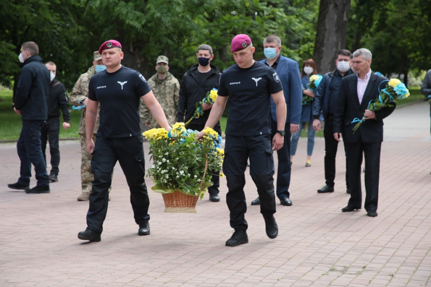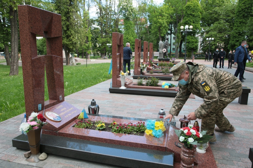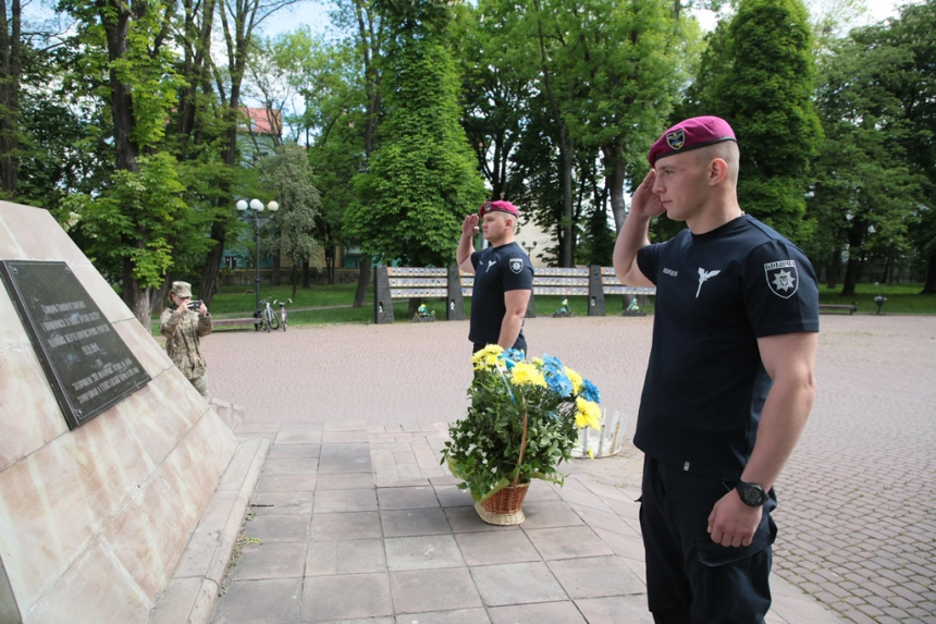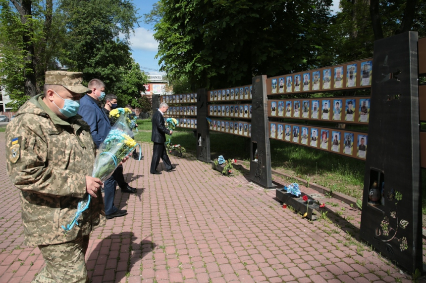 У Меморіальному сквері Івано-Франківська представники влади, керівники правоохоронних органів та військових структур поклали квіти до пам`ятників прикарпатських Героїв.