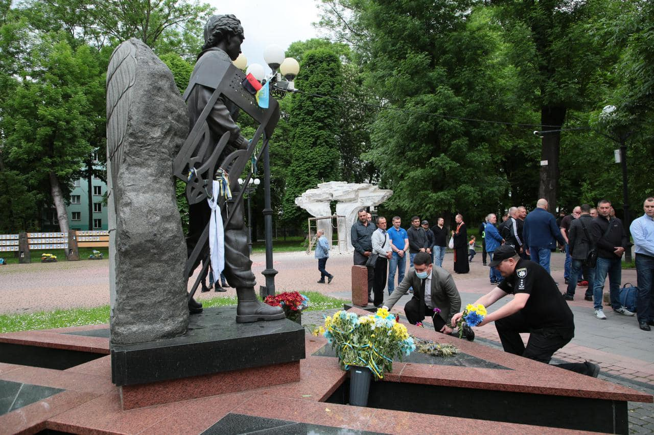 Сьогодні, у річницю загибелі захисників, у Меморіальному сквері Івано-Франківська відбулися поминальні заходи, участь у яких взяли посадовці, поліцейські, родичі та друзі загиблих.