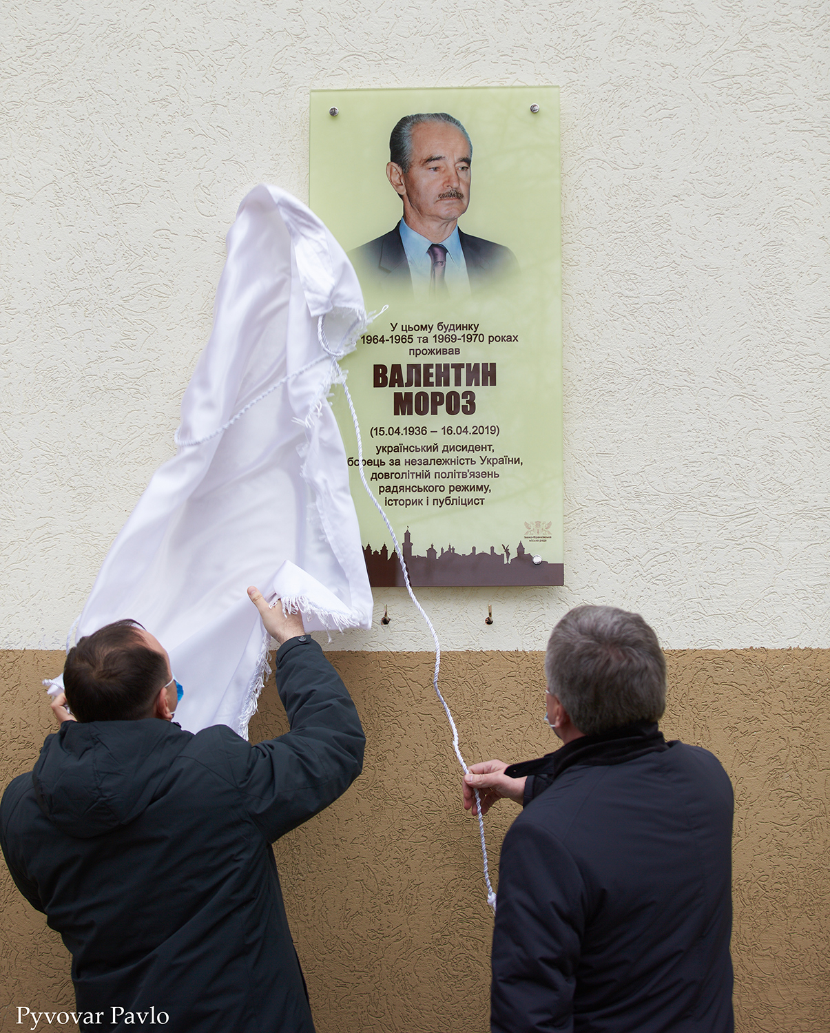 У рамках програми «Івано-Франківськ – місто героїв» на вул. Коновальця, 141, встановили пам’ятну дошку українському дисиденту, громадсько-політичному діячу, історику, політв’язню радянських тюрем Валентину Морозу.
