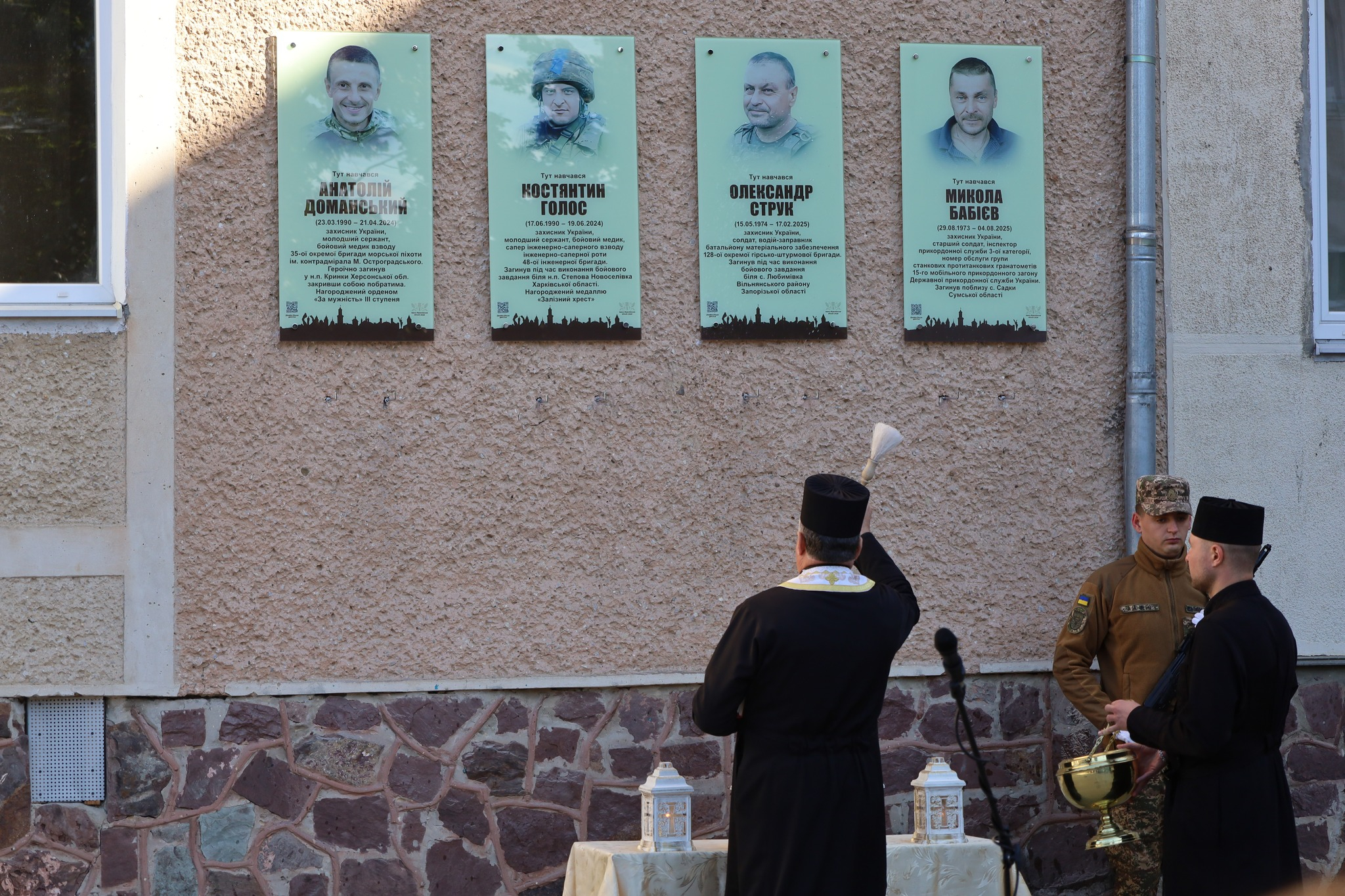 Пам'ятні знаки освятили на фасаді Ліцею №20, що на вулиці Гоголя, 10.