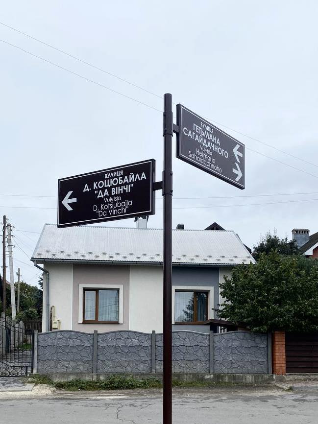 «Ви знаєте, де в місті Івано-Франківську вулиця Ірини Фаріон? А Віталія Мерінова? Героїв Охтирки? Дмитра Коцюбайла «Да Вінчі»? Ці та деякі інші вулиці було перейменовано, тому для кращого орієнтування, встановлюємо вказівники з новими назвами.