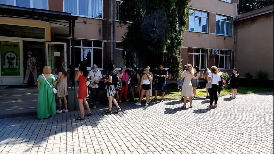 Перед навчальним закладом вишикувалася черга, приблизно з 20 людей, аби щепитися, пише Фіртка з посиланням на Суспільне.