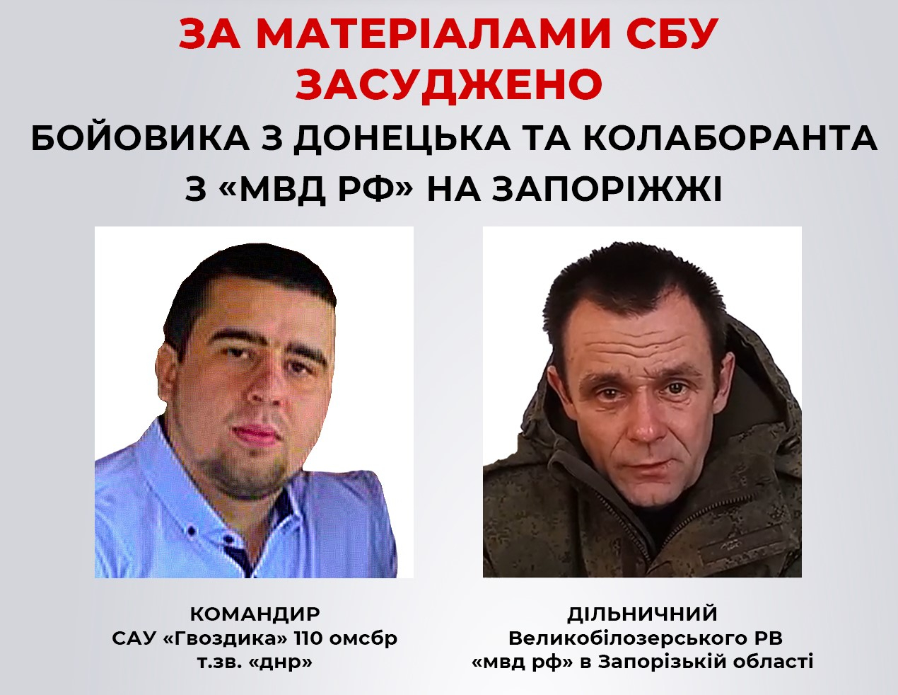 На підставі доказів, наданих слідчими СБУ, суд в Івано-Франківську виніс заочні вироки бойовику т.зв. «днр» та «дільничному» окупаційної поліції Запорізької області.