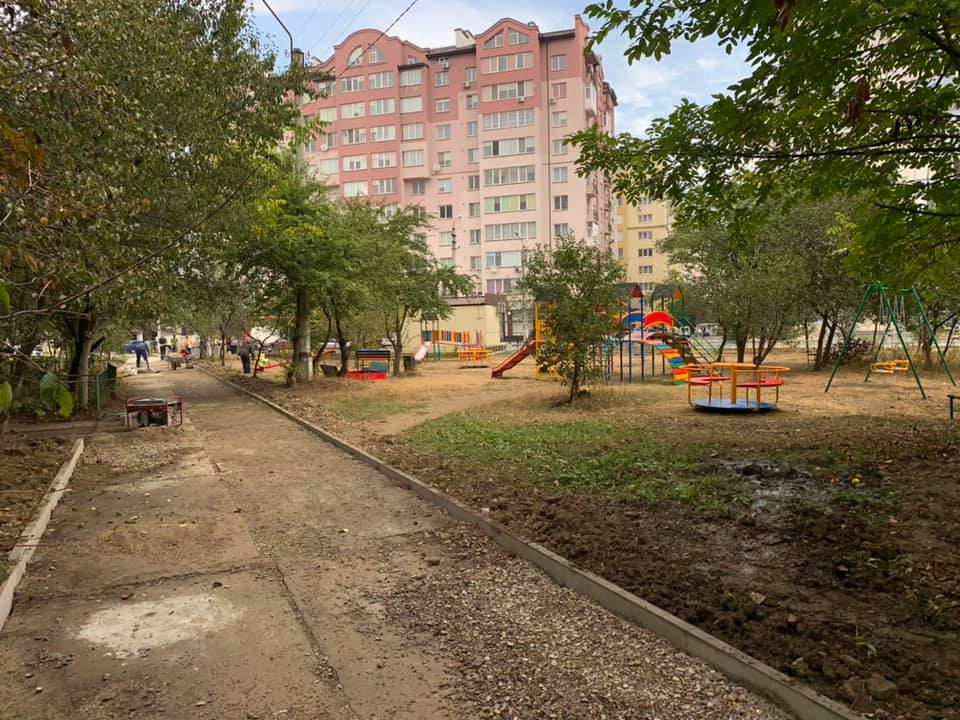 Днями, на вулиці Симоненка, 26, 28, 30 на замовлення Департаменту житлової комунальної політики та благоустрою розпочались роботи з облаштування скверу.