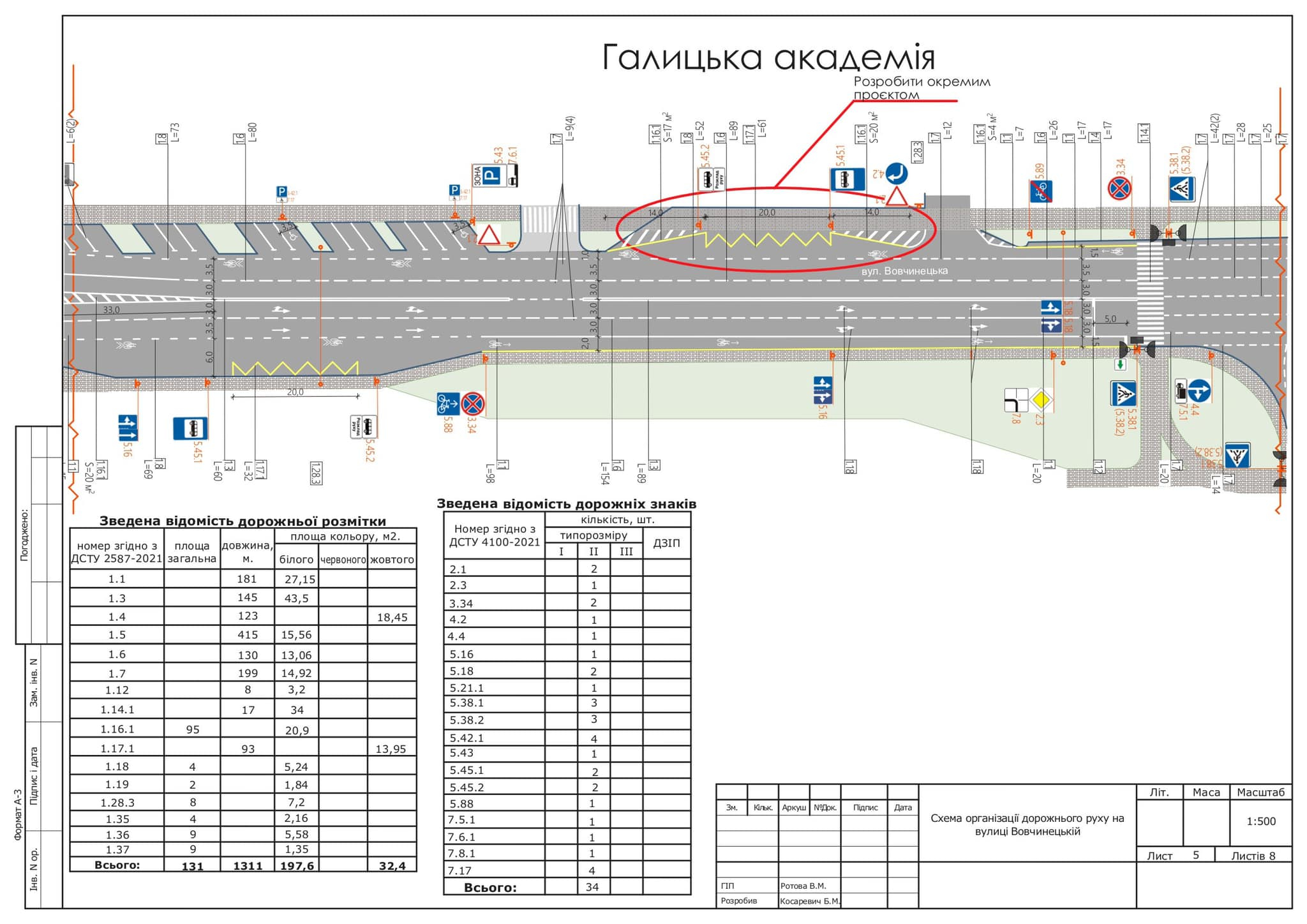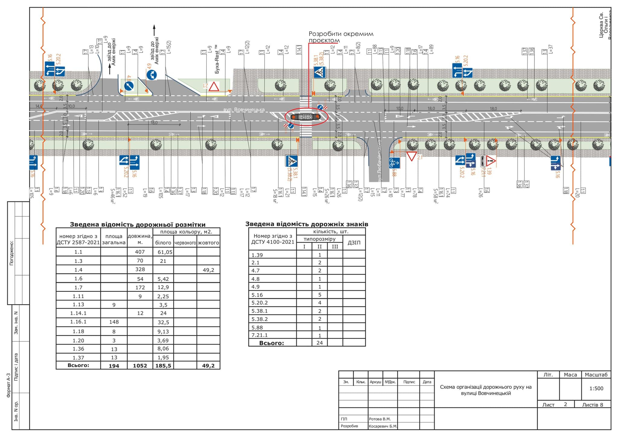 Найбільше змін буде на ділянці від вулиці Симиренка (ДНЗ «Кобзарик») до с. Вовчинець. Новою схемою організації дорожнього руху на вулиці Вовчинецькій передбачено: