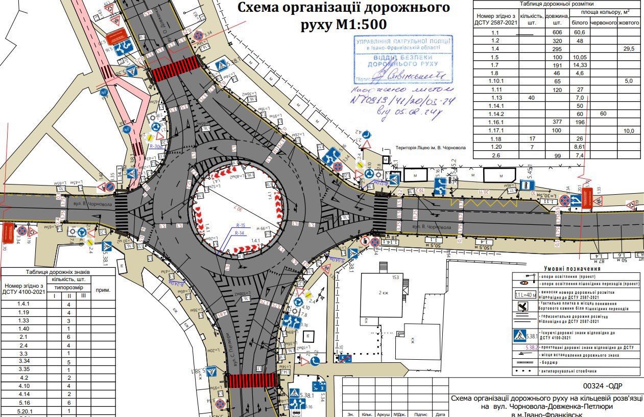 В Івано-Франківську на кільцевій розв’язці перехрестя вулиць Чорновола–Довженка–Петлюри уточнено схему руху.