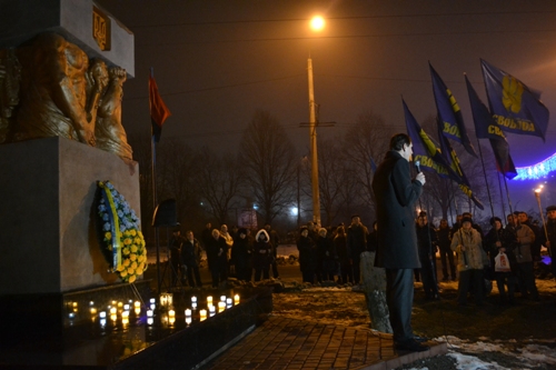 На пам’ятному віче до присутніх звернувся Народний депутат України, голова Івано-Франківської обласної організації ВО «Свобода» Олександр Сич.