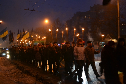 Вчора в Івано-Франківську відзначили День Соборності України. Смолоскипною ходою іванофранківці пройшлися вулицями міста до пам’ятника Борцям за волю України, де і відбулося пам’ятне віче.