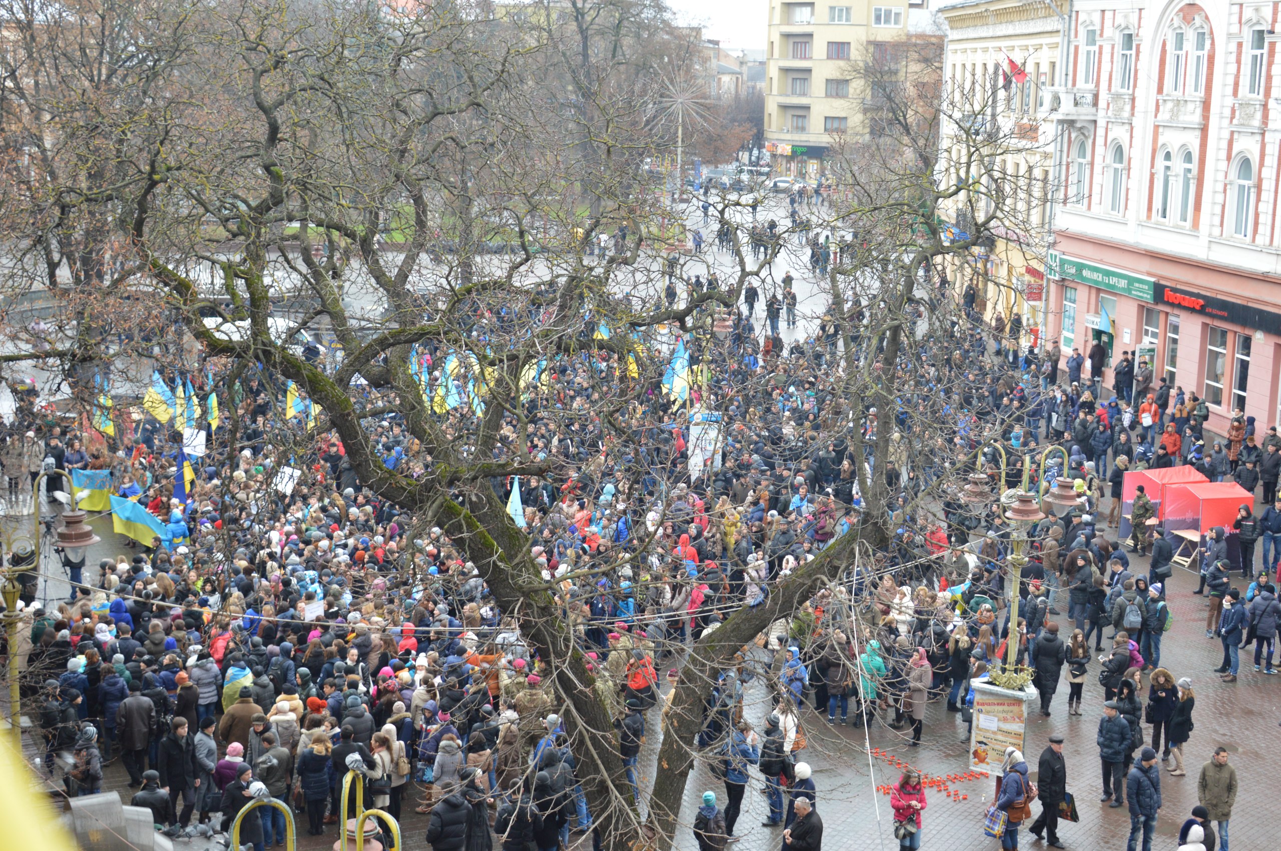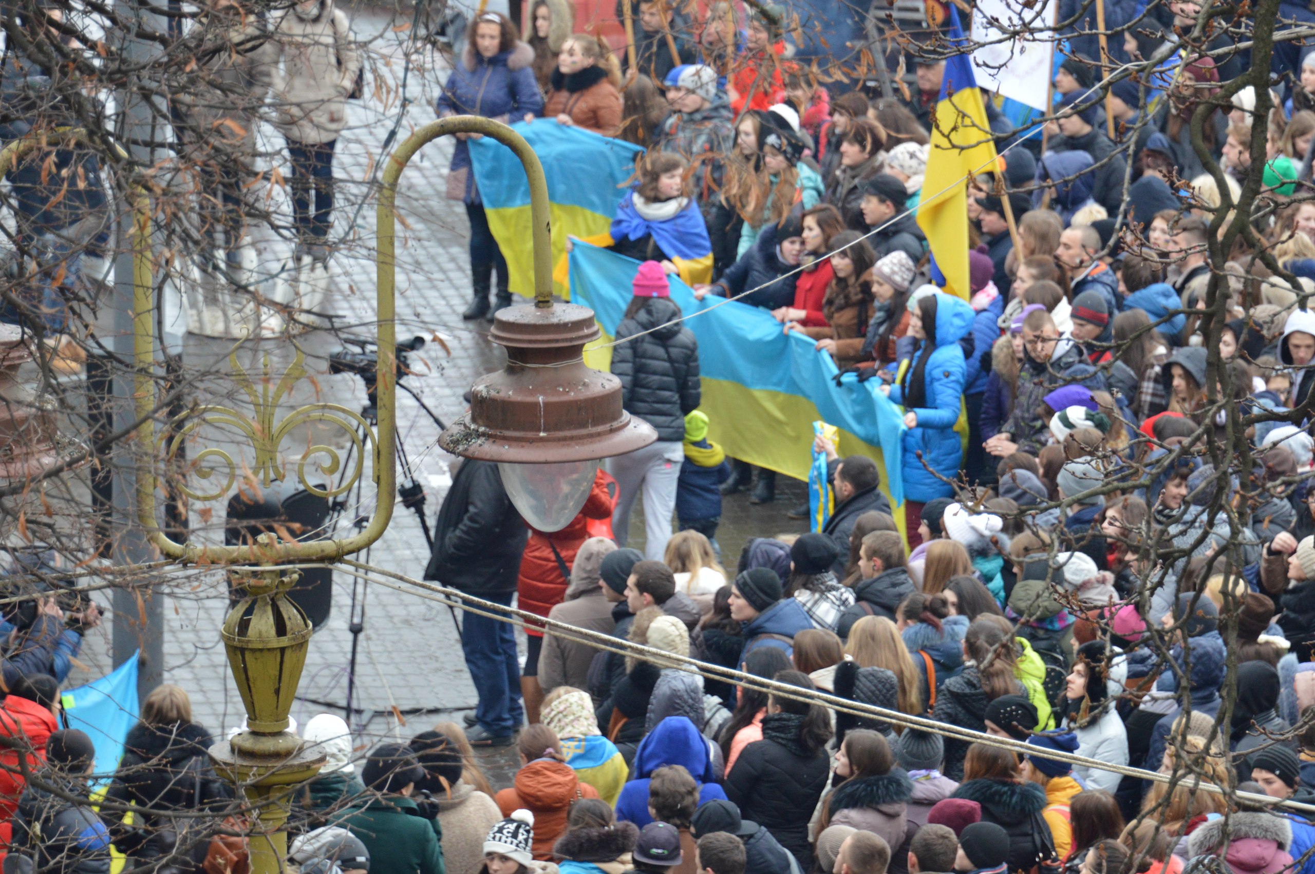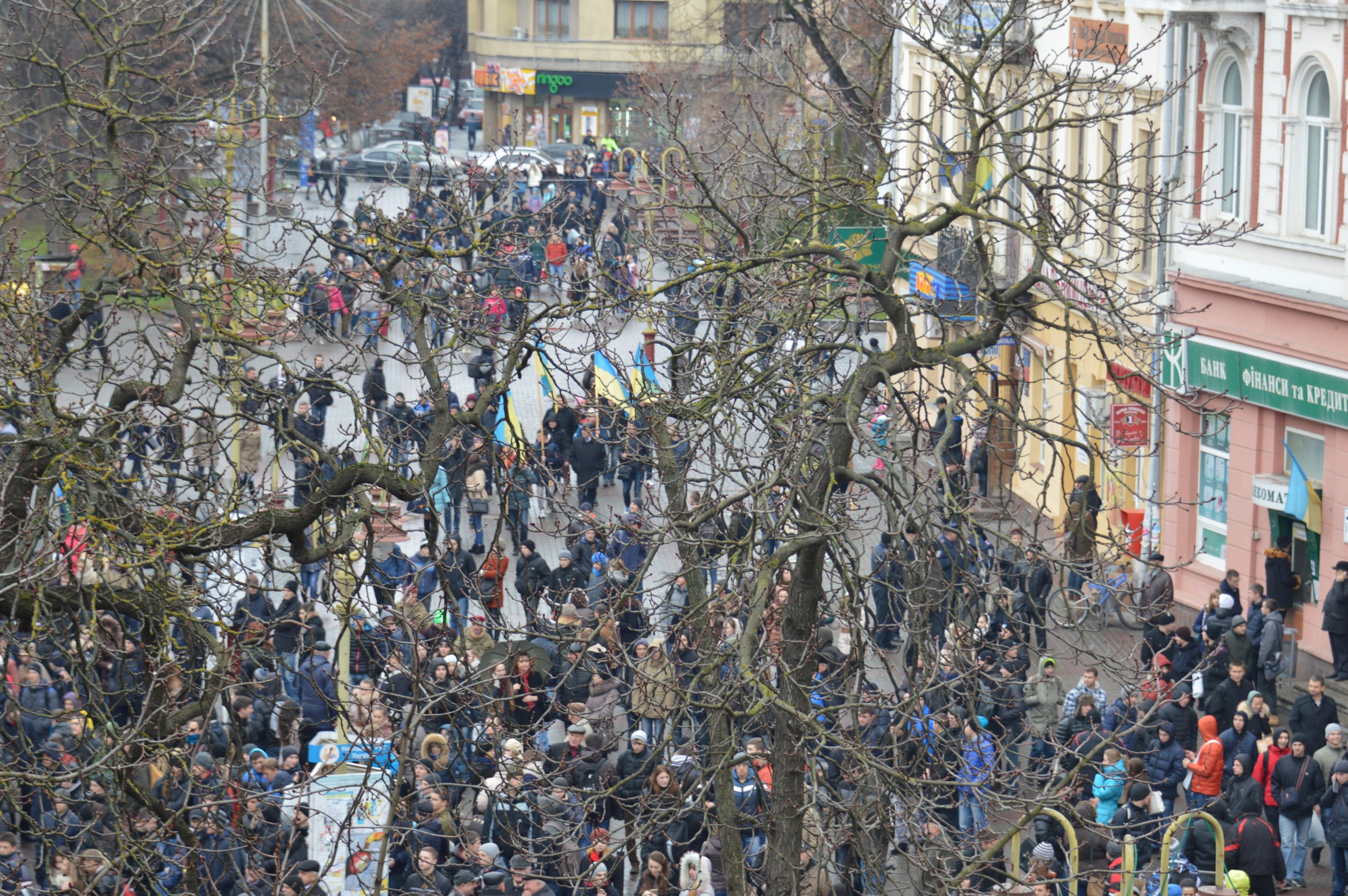 В Івано-Франківську сотні студентів, мешканців та гостей міста вийшли на Вічевий майдан, щоб відзначити річницю Євромайдану.