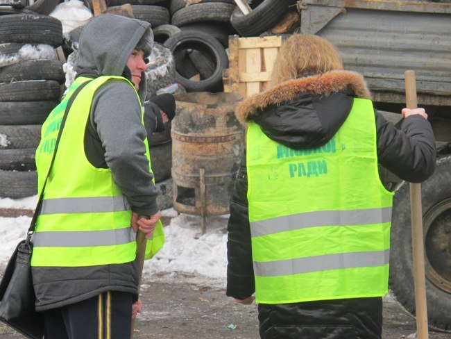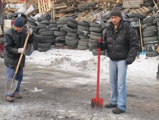 Із лопатами, рукавицями і тачками франківці вирішили прибрати територію Майдану.