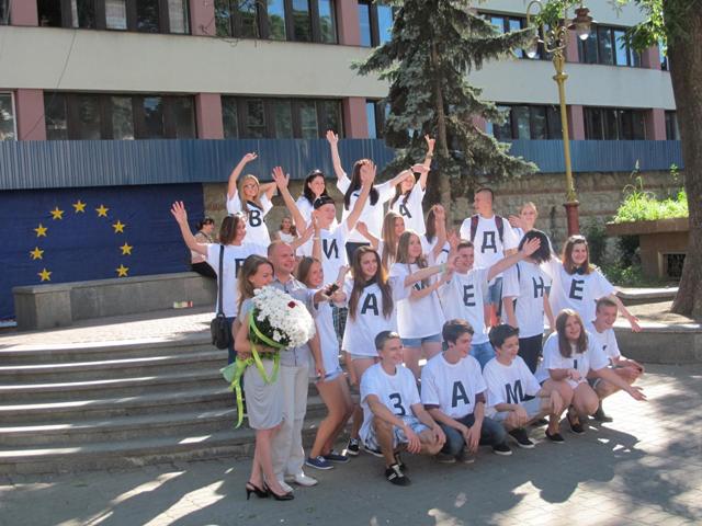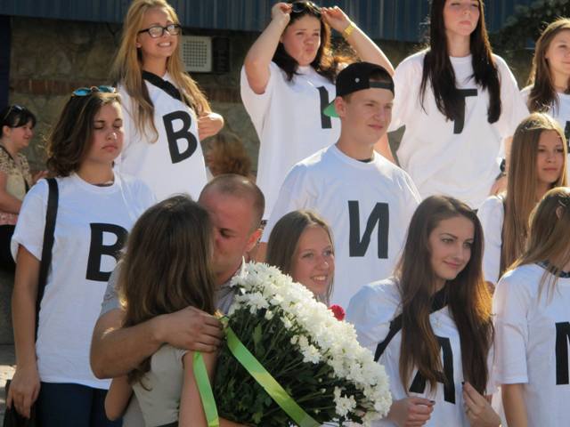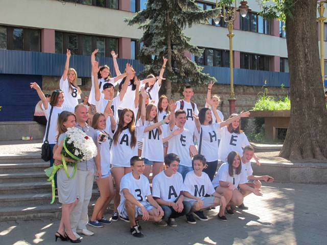 «Ми з нареченою прогулювалися сквером Міцкевича та Вічевим майданом. До нас підходили хлопці та дівчата в білих футболках з буквами, роздавали реклами з весільними салонами, відеозйомкою. На площі у нас ніби брали інтерв’ю, а за той час молодь вишикувалася та зімітувала надпис-пропозицію про одруження», - розказує наречений.