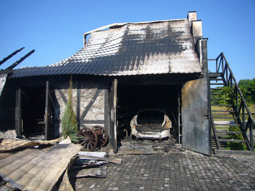 Відео з камер спостереження зафіксували два нічних вибухи. В результаті вибухів повністю зруйновано та вигоріли до тла службові та офісні приміщення комплексу. Згорів і автомобіль доньки власників "Чорного замку" Катерини Сметанюк, що знаходився в боксі в будівлі.