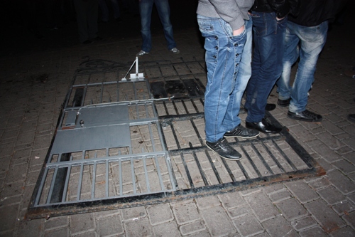 За кілька хвилин вулицю заблокували кілька сотень прихильників ВО Свобода, які не дозволили правоохоронцям вивести з дворика затриманих.