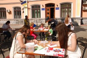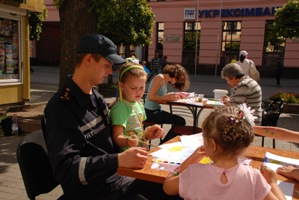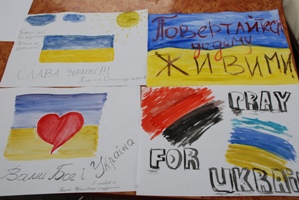 Психологи Управління ДСНС в області разом з дітьми намалювали малюнки для захисників України. Також всі бажаючі мали змогу написати слова підтримки воякам.