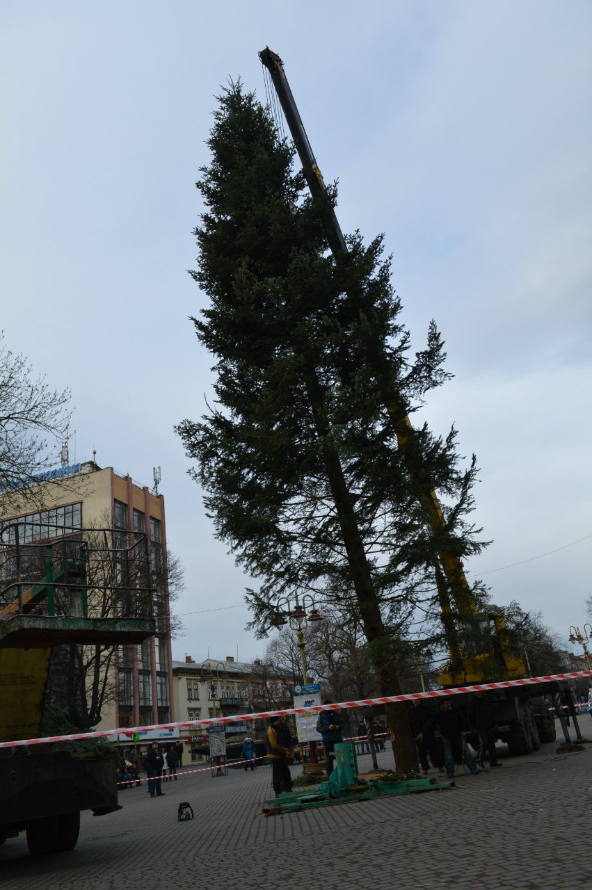 Щойно в Івано-Франківську розпочали встановлення головної новорічної "йолки" міста.