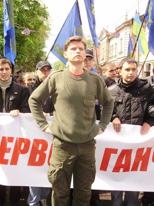 Лідер "свободівців" Роман Онуфріїв у "військових обладунках"