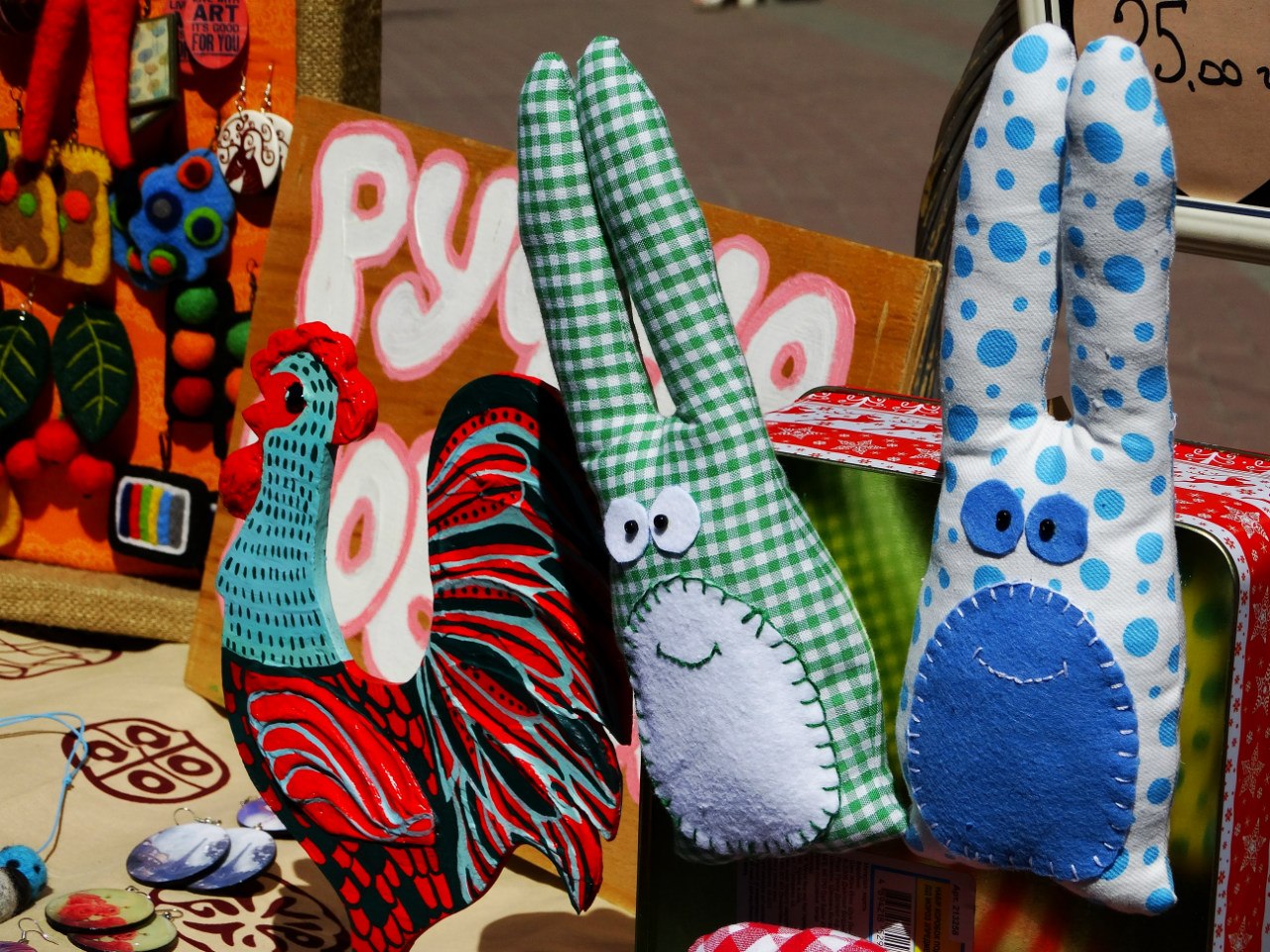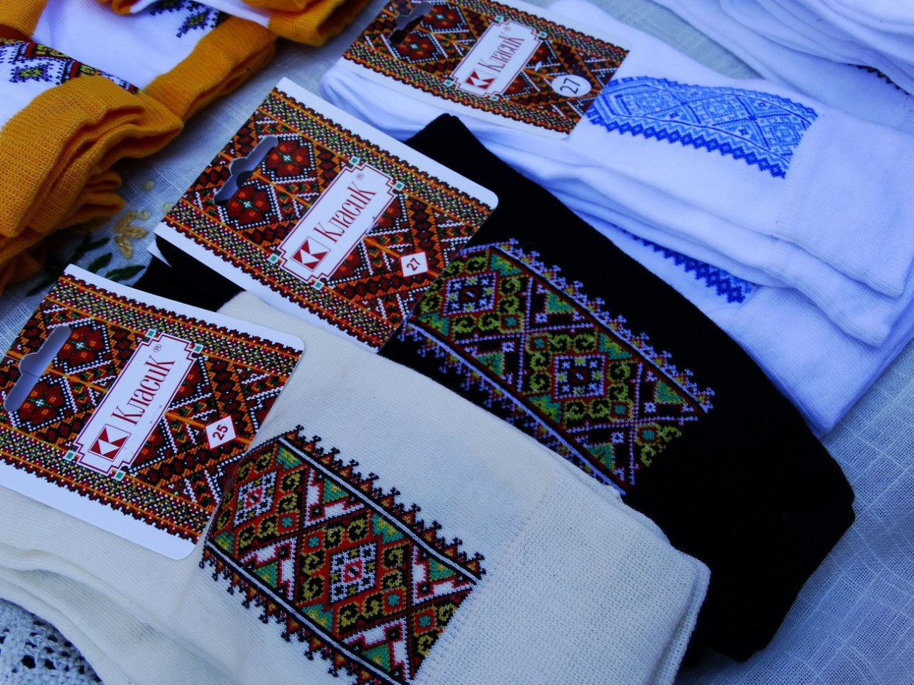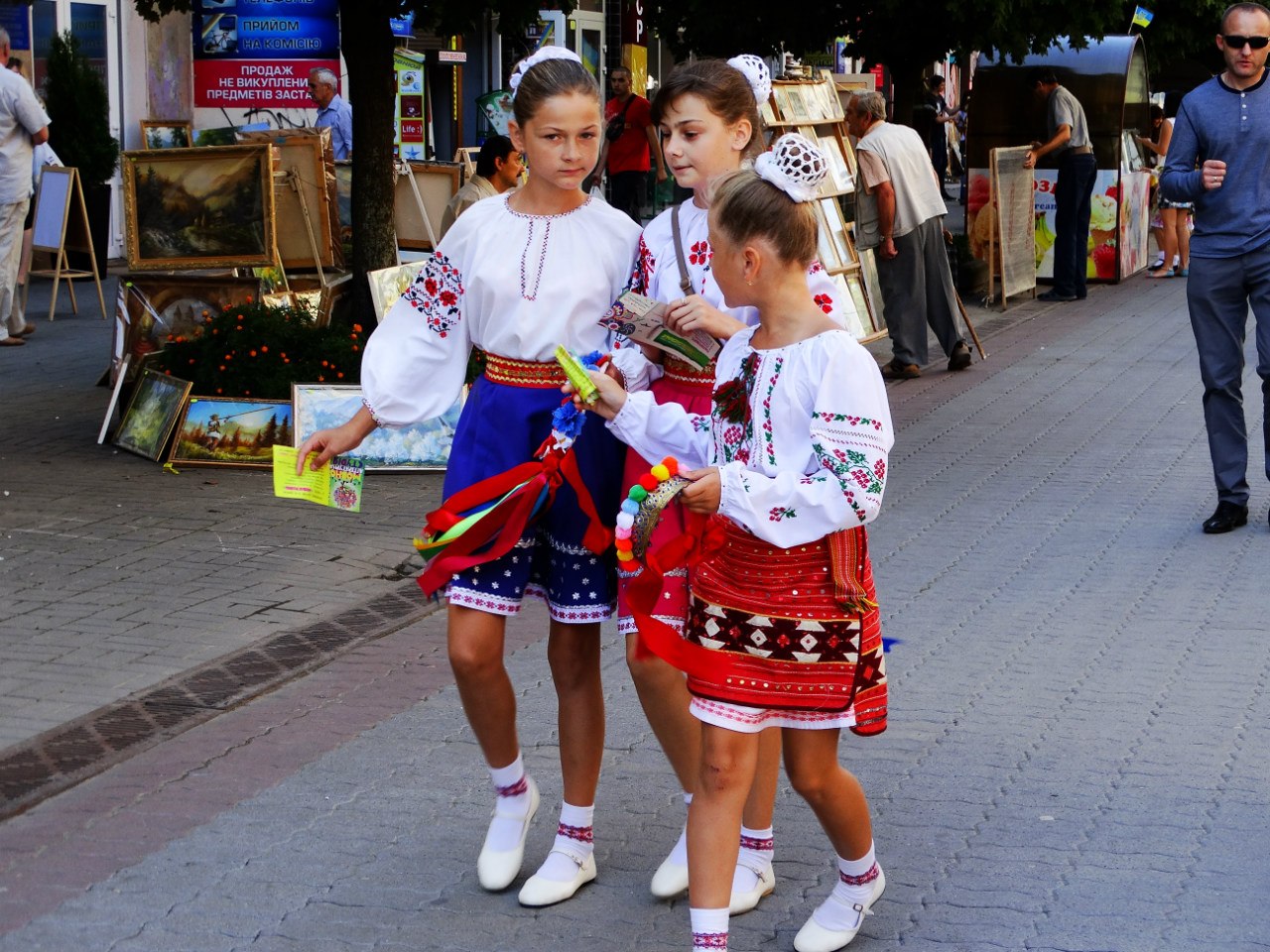 Від самого ранку на пішохідній частині вулиці Незалежності розпочався патріотичний ярмарок. У продажі - стилізовані українським орнаментом шкарпетки, різноманітні керамічні вироби, вишиті сорочки, лялки ручної роботи і звичайно ж уже традиційні футболки із надписами про Путіна.