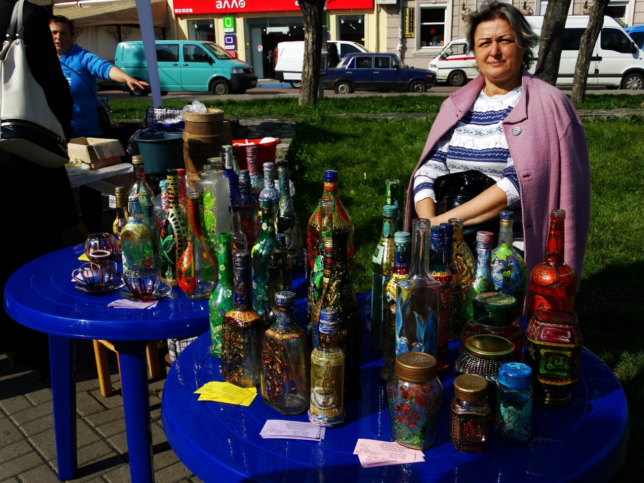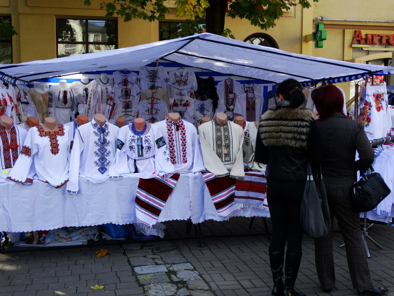 Від ранку на Площі Ринок підприємливі прикарпатці пропонують гостям свята свої вироби. У продажу - українська вишивка, стилізовані українським орнаментом шкарпетки, шапки, панчохи, різноманітні керамічні вироби, ляльки ручної роботи і звичайно ж уже традиційні футболки із надписами про Путіна.