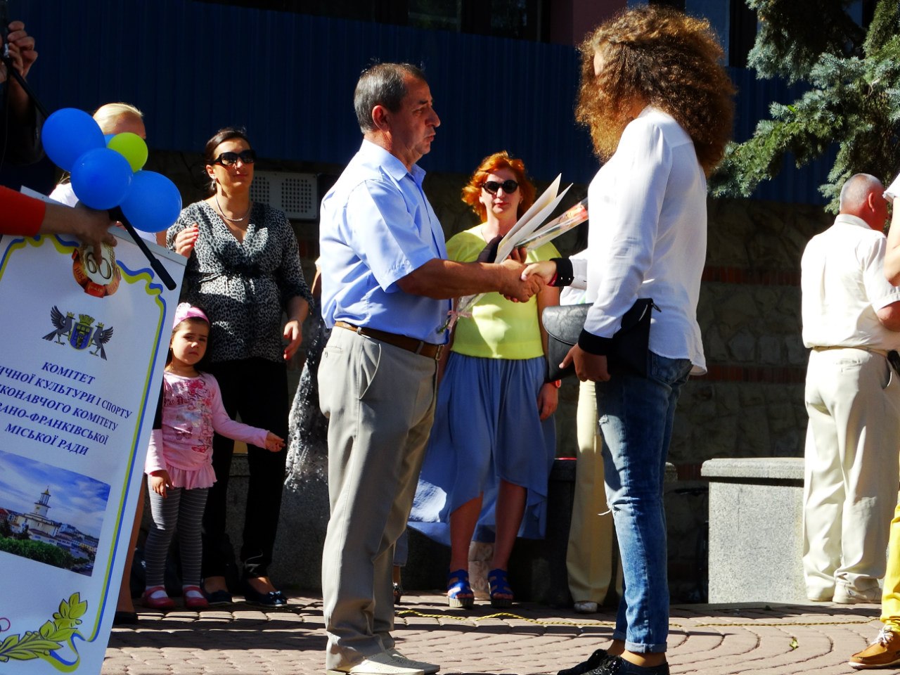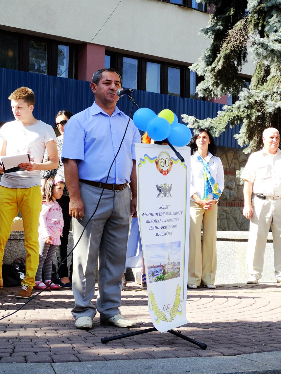 "З висоти сьогоднішнього дня все більше пізнаємо ціну фізичної культури і спорту, ціну тих спортивних змагань, коли представники України здобувають перемогу і весь світ їм аплодує, дивлячись, як високо піднімається наш жовто-синій прапор. Але дорога до перемог є дуже довгою і вона починається у спортивних школаш. Хочу привітати всіх тих, хто має відношення до виховання наших юних спортсменів - вчителів фізичного виховання і тренерів спортивних шкіл, усім, хто виховує нашу спортивну юнь. Спорсменам бажаю перемог і досягнення спортивних мрій", - привітав присутніх заступник міського голови Івано-Франківська Михайло Верес.