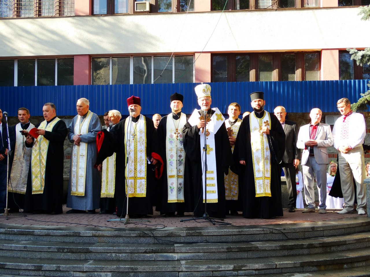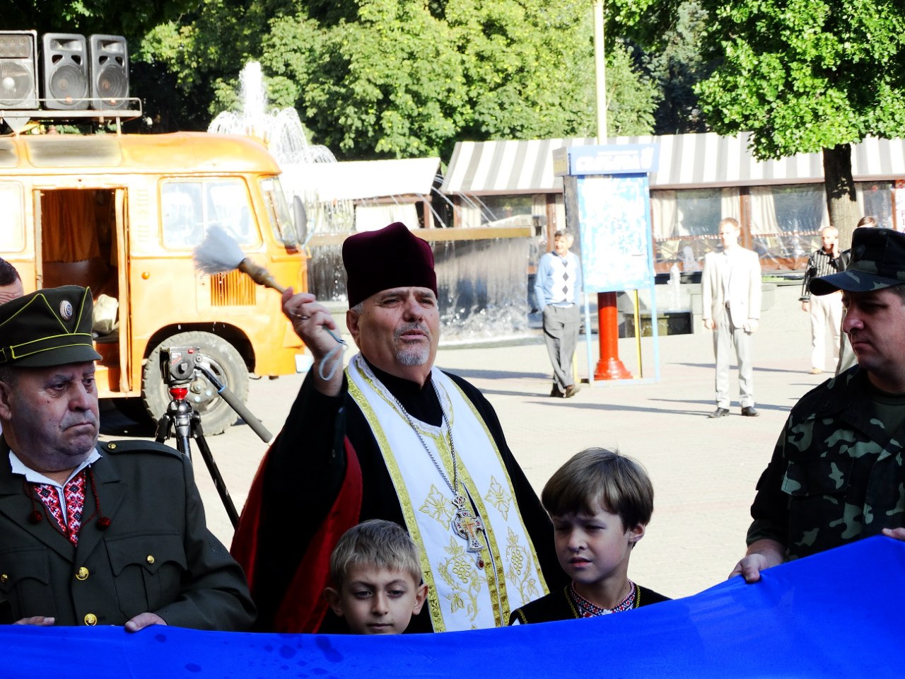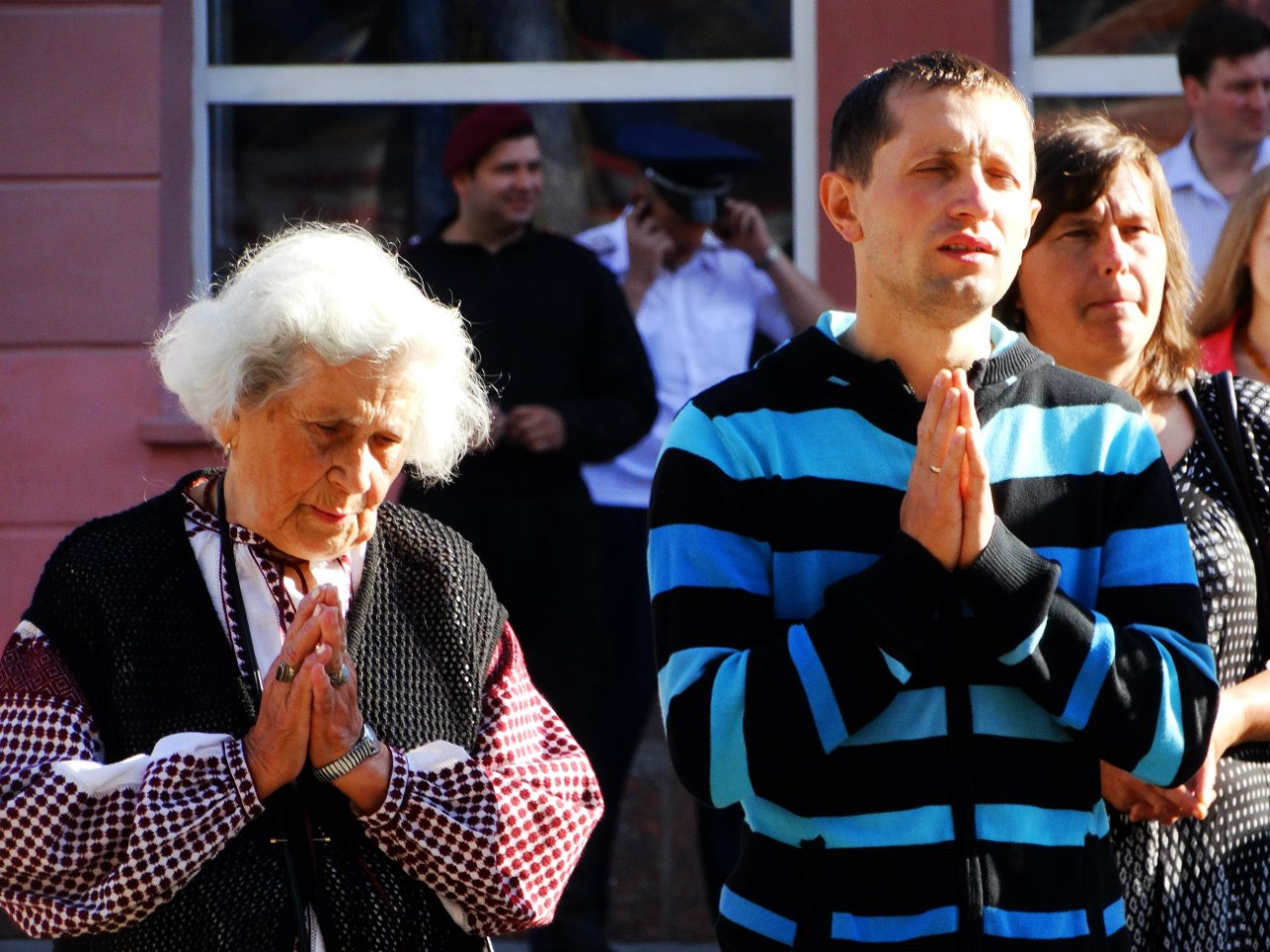 Священники усіх конфесій освятили національний стяг і поблагословили український народ, українську армію і владу на плідну працю для розвитку держави і її захисту.