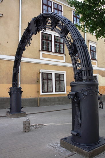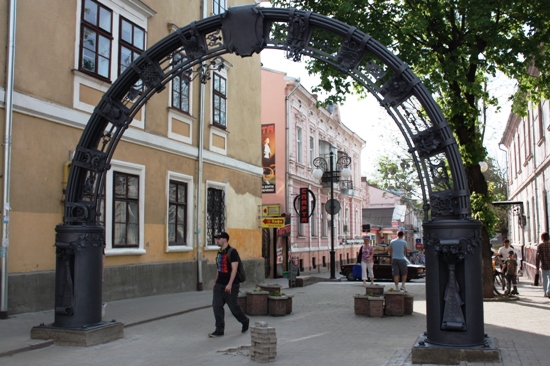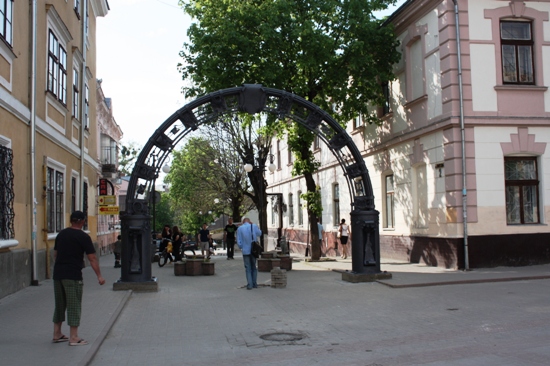 Саме ця назва міста написана біля підніжжя арки з чотирьох боків українською, польською і ще двома мовами (швидше за все івритом та вірменською).