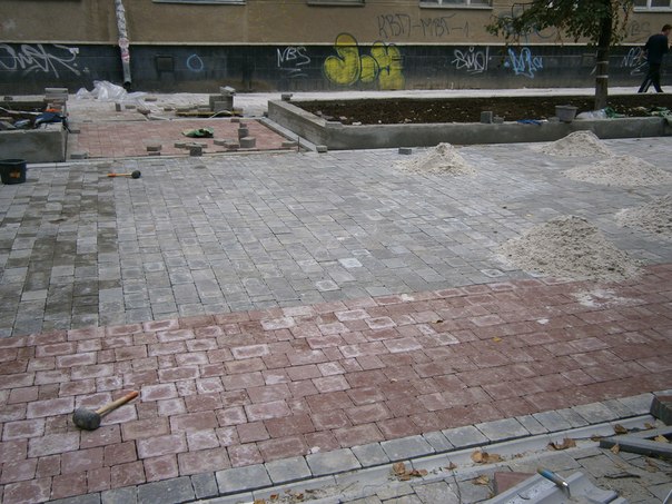 Цього тижня на вулиці Шевченка розпочали укладати бруківку. Наразі роботи йдуть в повному темпі, але навряд чи до Дня Незалежності робітники виконають той план робіт, який неодноразово обіцяла нам місцева влада.