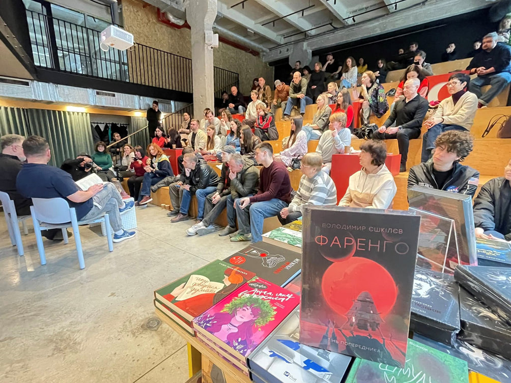 Біороботи-клони для еротичного обслуговування і домашніх робіт, ліки-нанороботи, гирги, надсвітлові «нори», імперські орденські структури, психопатія влади, безпілотники, екзопланети, полювання на інопланетних водяних монстрів-динозаврів, цивілізації рептилоїдів-«повзучих» і жриць-«знаючих»…, - в Івано-Франківську, в книгарні "Сенс", що розташована на Промприладі, відбулася презентація нововиданої першої з трилогії книги-космоопери Володимира Єшкілєва «Фаренго. Тінь попередника» (видавництва "Жорж").