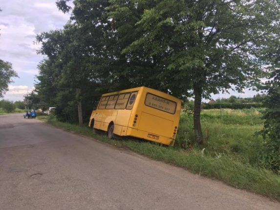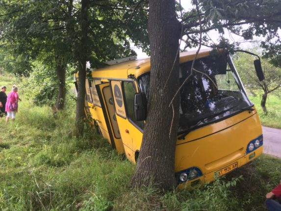Відомо, що автобус із пасажирами з'їхав в кювет та врізався в дерево.
