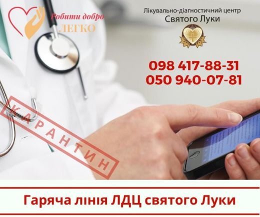Після колективних зборів клінікою було прийнято рішення створити «гарячу лінію ЛДЦ святого Луки», куди кожен з Вас може звернутися не тільки з питань коронавірусу, а й отримати рекомендації лікарів різних спеціальностей в режимі телефонного зв'язку.
