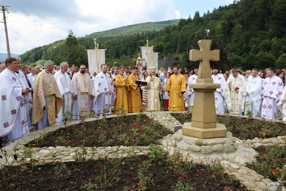 «Цей хрест є знаком подяки Богу за отця Климентія Шептицького, який разом зі своїм братом Андреєм Шептицьким, заснували цей монастир у 1935 році. Саме тут будувалась жива церква. Монахи, які прийшли сюди, окрім молитовного життя, зайнялись просвітницькою діяльністю, а саме навчали дітей різного ремесла. Цей монастир набув величезного розвитку. Феноменом його є те, що він перетривав у часі радянського режиму. Монахи звідси не втекли, не зважаючи навіть на те, що монастир був закритий і перетворений на музей атеїзму. В церкві, яка згоріла у 2015 році, знаходились різні предмети, які показували безсенсовність віри у Бога, натомість монахи, які жили в монастирській хаті поруч, своїм життям доказували протилежне. Отець Порфирій Чучман і Мирон Деренюк були тут постійно. Один з них два рази сидів у тюрмі тільки через те, що був монахом. Одного разу йому дали 5 років, бо під час обшуку знайшли фотографію, на якій він був з дітьми і приготовляв їх до Першого Причастя. Сьогодні ми є щасливі з того, що є часи свободи і ми можемо вільно сповідувати нашу віру», - говорить отець.