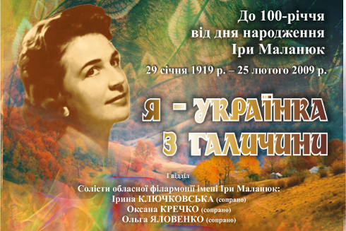 29 січня в обласній філармонії відбудеться концерт до 100-річчя від дня народження Іри Маланюк.