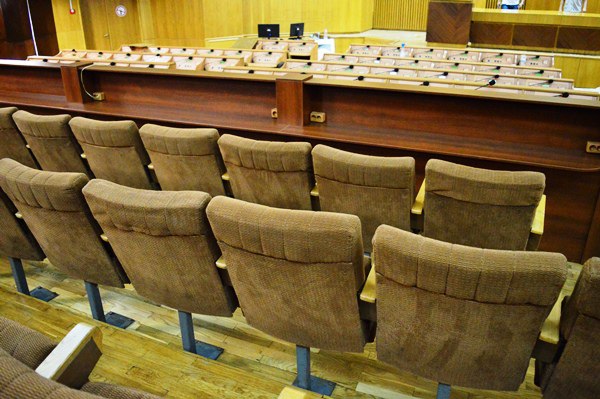 Наразі в залі зробили ремонт, змінили освітлення, встановили індивідуальні сидіння для депутатів, два плазмових монітори та систему голосування «Віче».