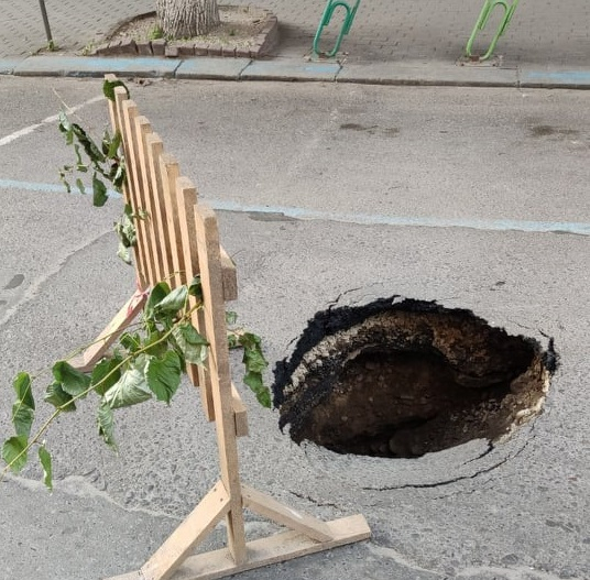 "«Ямка» на Грушевського біля Люм‘єру, сьогодні був робочий день - робити не планують, вона тільки збільшується, чекають поки якесь авто піде під землю", - йдеться у повідомленні.