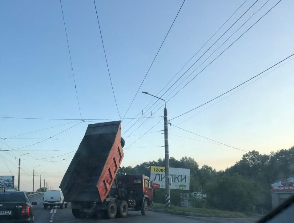 Як повідомляють очевидці, вантажний автомобіль зачепив лінії електропередач, інформує Фіртка.
