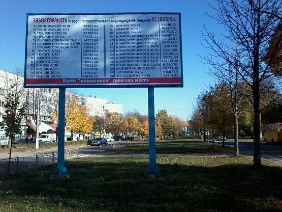 "КП "Водотеплосервіс" продовжує активну роботу щодо ліквідації заборгованості населення за послуги водо-, теплопостачання та водовідведення, шляхом розміщення інформації про боржників на білбордах міста", - йдеться у повідомленні.