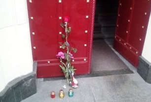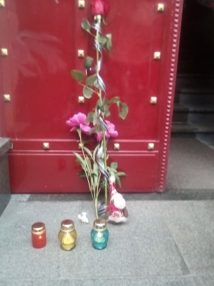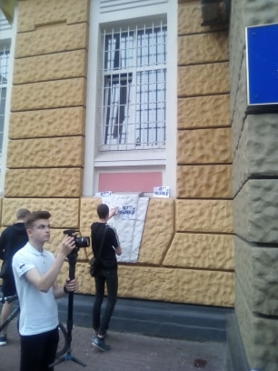 Активісти принесли під будівлю УНП на вулиці Академіка Сахарова 15 м'які іграшки та лампадки.