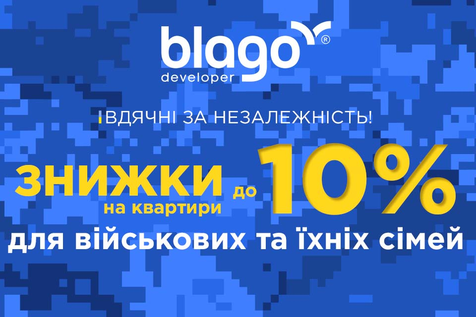З нагоди Дня Незалежності провідна франківська компанія blago developer підготувала спеціальну пропозицію на квартири для військовослужбовців та їхніх сімей.