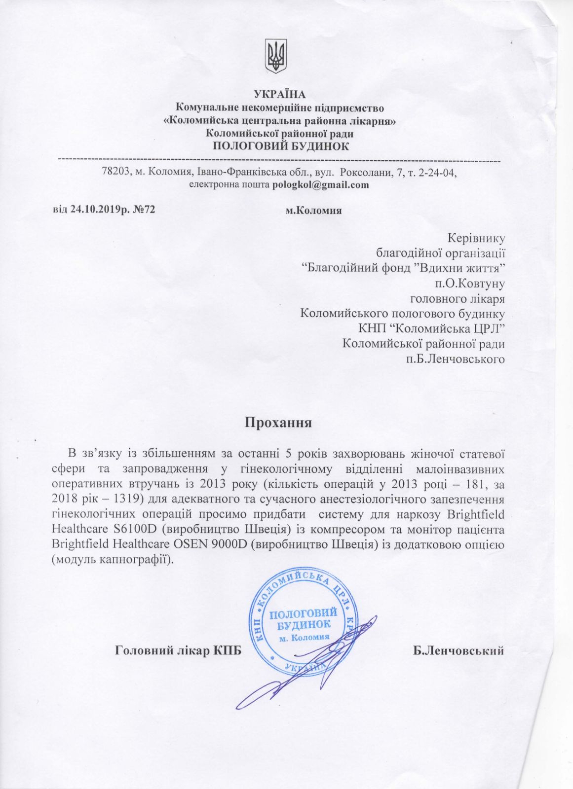 "Вдихни життя": в Коломиї збирають кошти на апарат штучної вентиляції легень у пологовий будинок