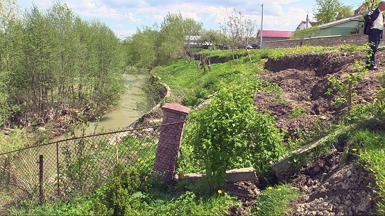 Дощі продовжують руйнувати бетонне берегоукріплення. Одна частина дамби зруйнована, інша нахилена в бік річки. Це вже впливає на прибережні домогосподарства. На будинках пошкодження зазнали фундамент та фасади.