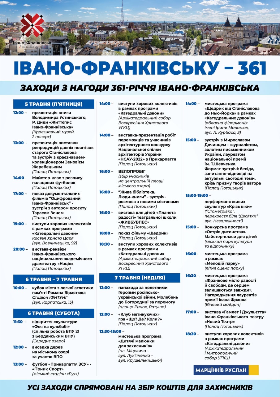 Окрім цього, стала відома програма заходів, присвячена відзначенню Дня міста.